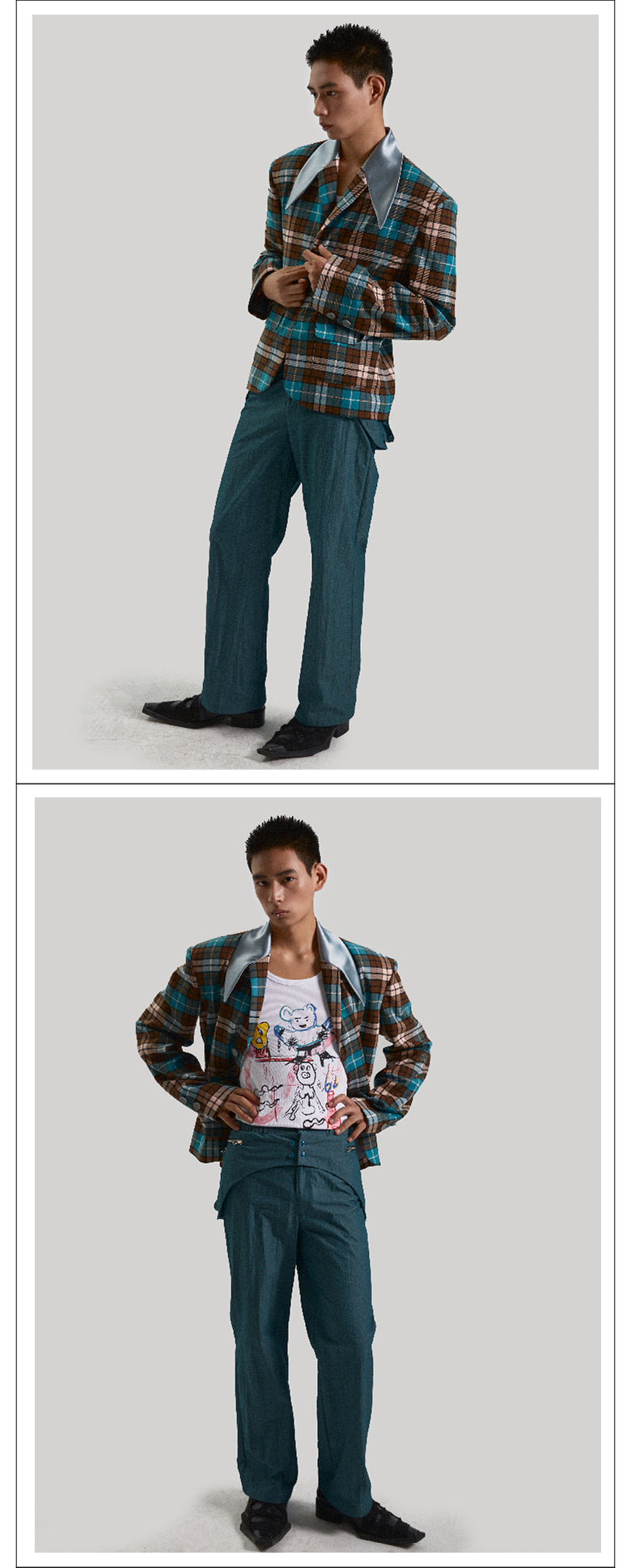 Bright retro checkered suit
